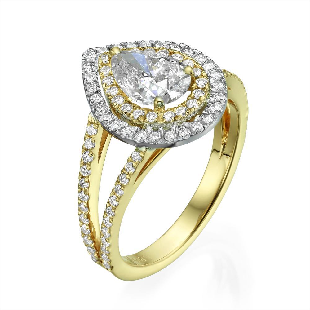 טבעת אירוסין מרשימה משובצת יהלום מרכזי בצורת 'טיפה' במשקל 1 קראט! ולצידו 98 יהלומים נוספים.