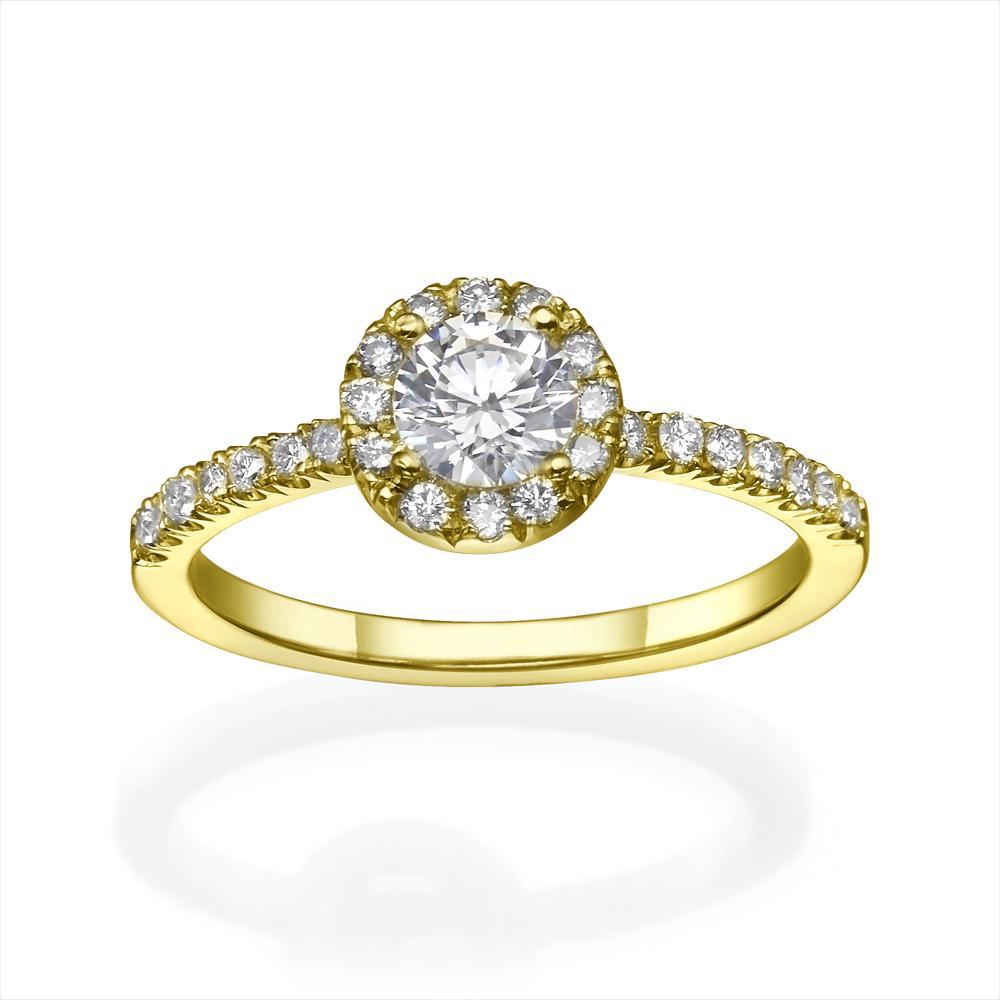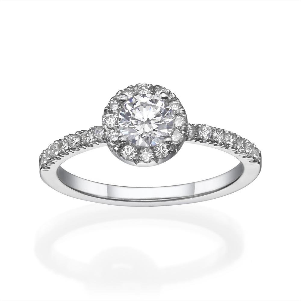 טבעת אירוסין ריגינה משובצת יהלום מרכזי מרשים במשקל 0.70 קראט וסביבו יהלומים נוספים.